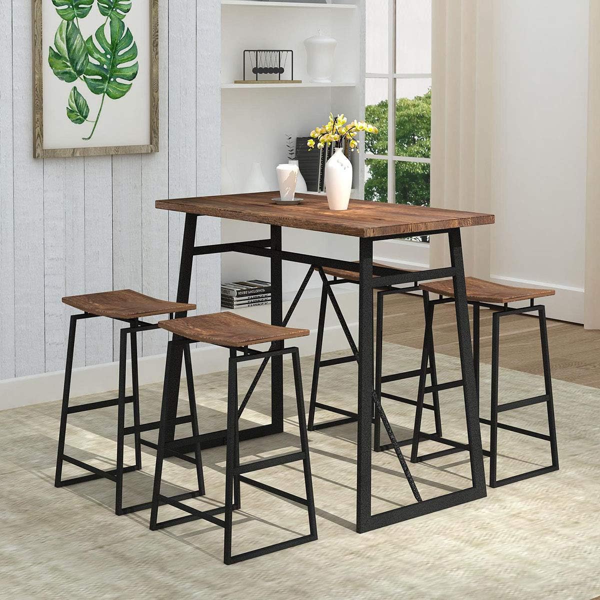 Mieres 5 pcs kitchen table set dining room table set for 4 kitchen counter with 4 bar height stools, for home︱farmhouse︱restaurant︱cafe, mdf top & steel frame (47 l x 23 w x 34 h) 4.2 out of 5 stars.